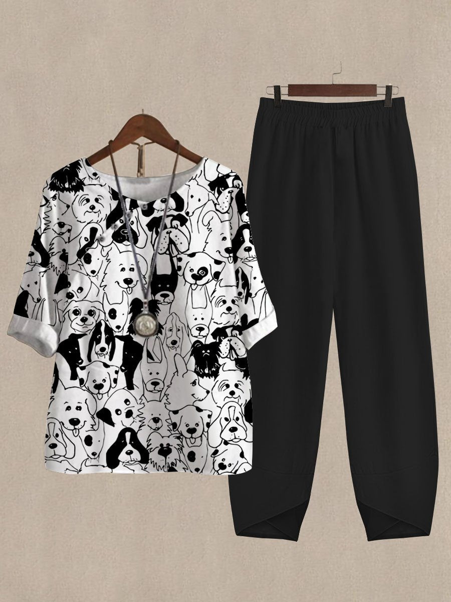 Cartoon Cute Puppy Print Casual Two-piece Suits