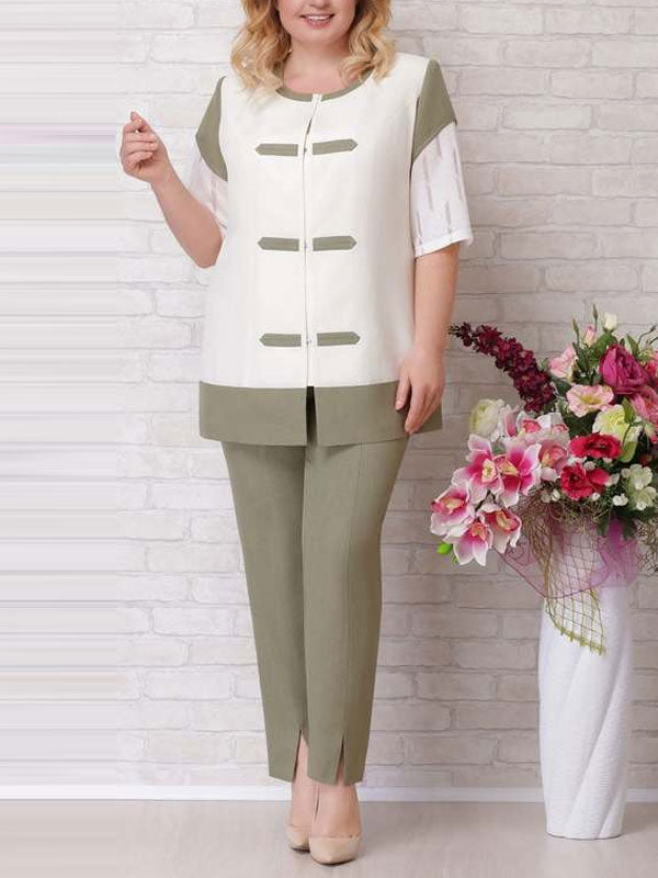 Linen Casual Women's Color Block Print Two Pieces Set