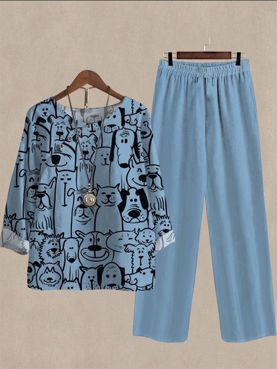 Linen Casual Women's Childlike Patten Print Two Pieces Set