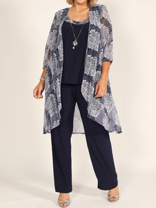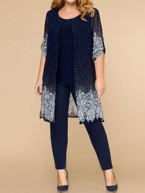 Embroidered Top Chiffon Long Pants Three Piece Suits