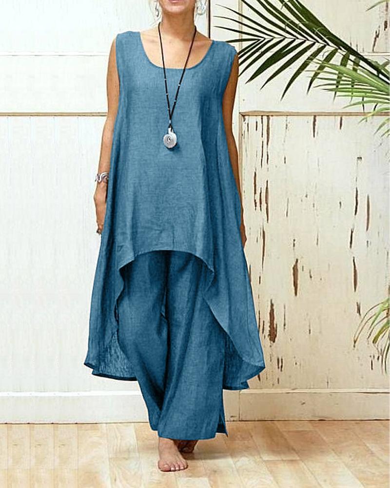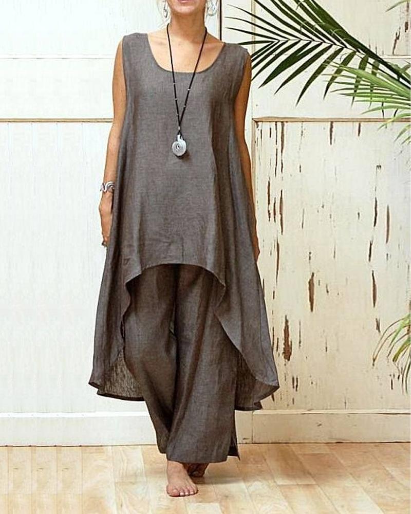 Casual Simple Color Loose Two-Piece Suit