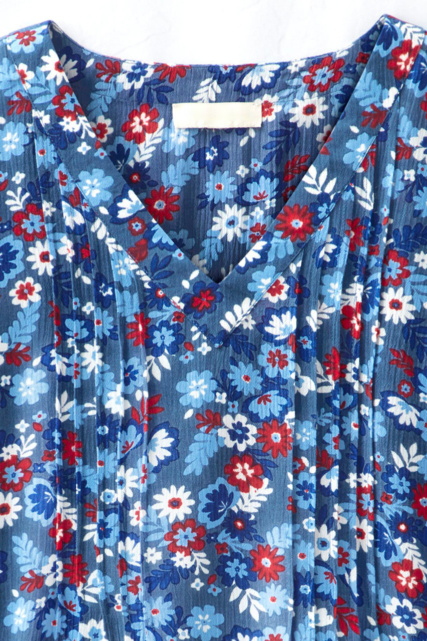 Like festive flower-works, this lively print delights with small pops of color. Topstitched tucks release into an easy drape on our versatile crinkled top. Slight shirttail hem.