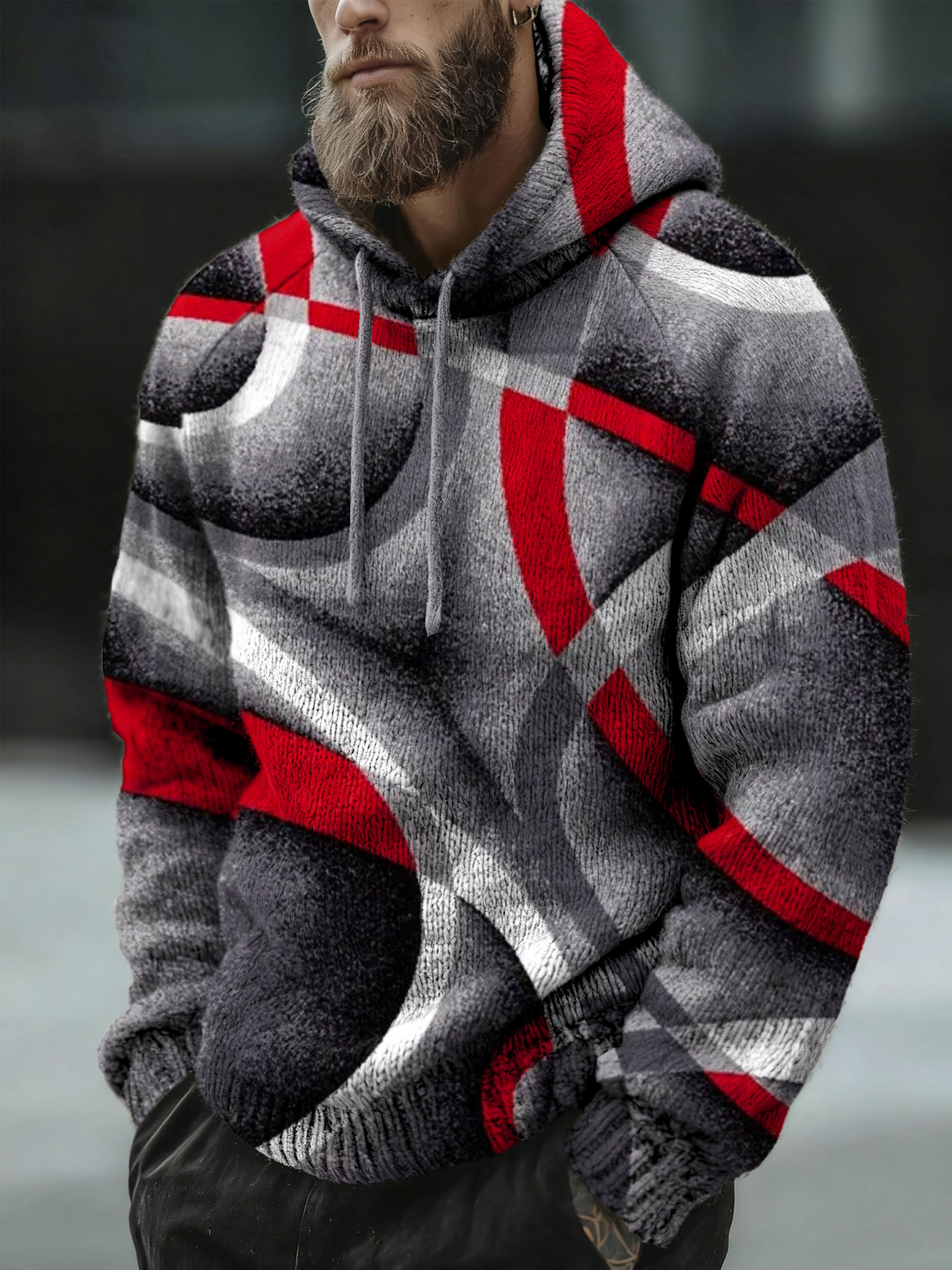 Christmas Color Block Modern Art Print Casual Knitted Hoodie Sweater