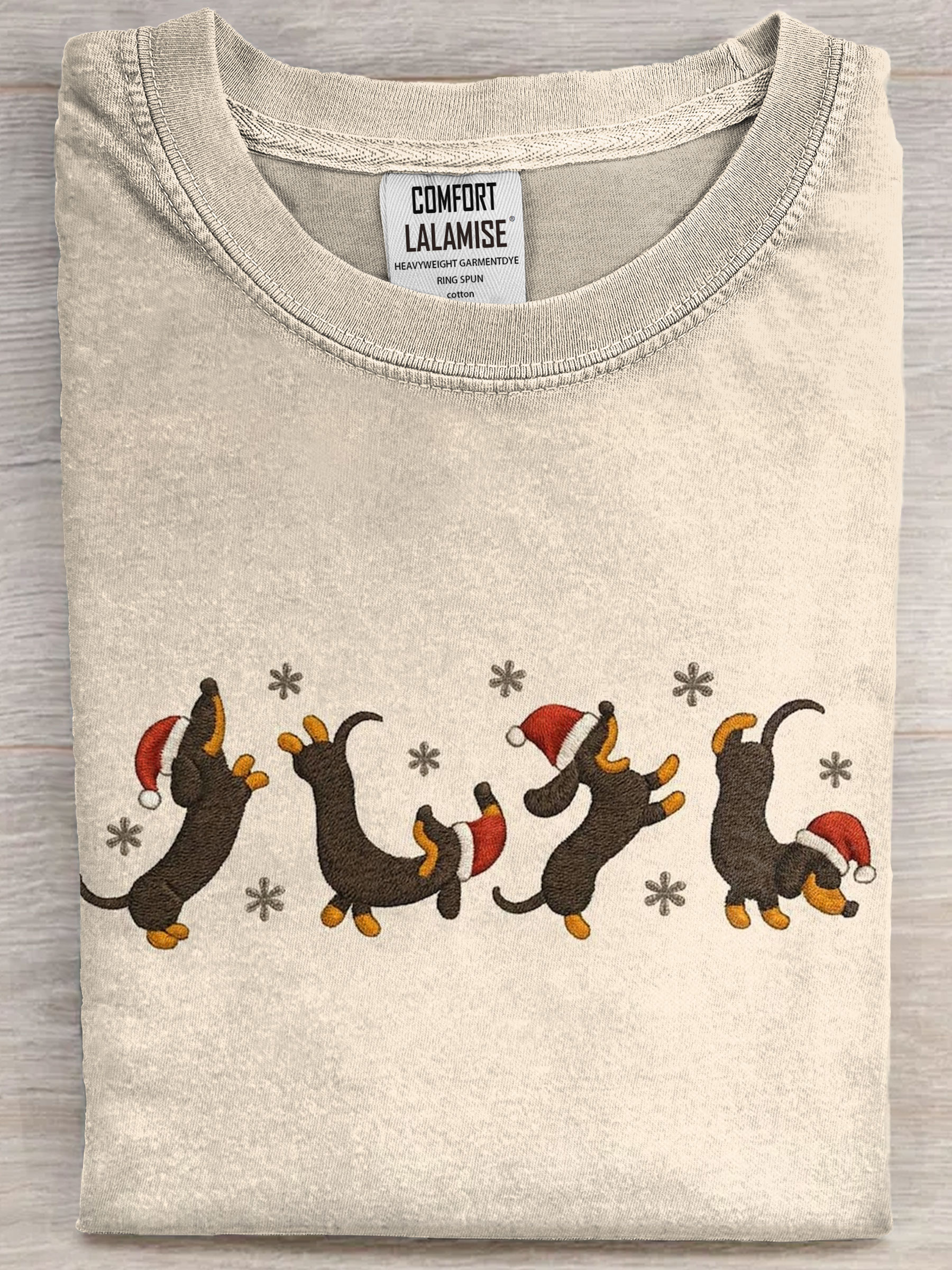 Christmas Dachshund Art Print Casual Short Sleeve T-shirt