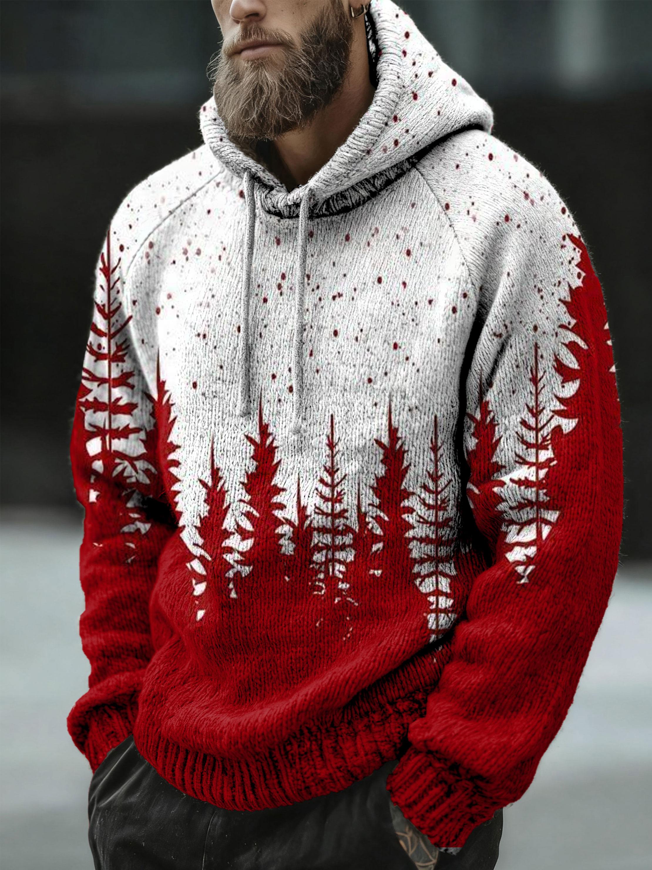 Christmas Forest Art Print Casual Knitted Hoodie Sweater