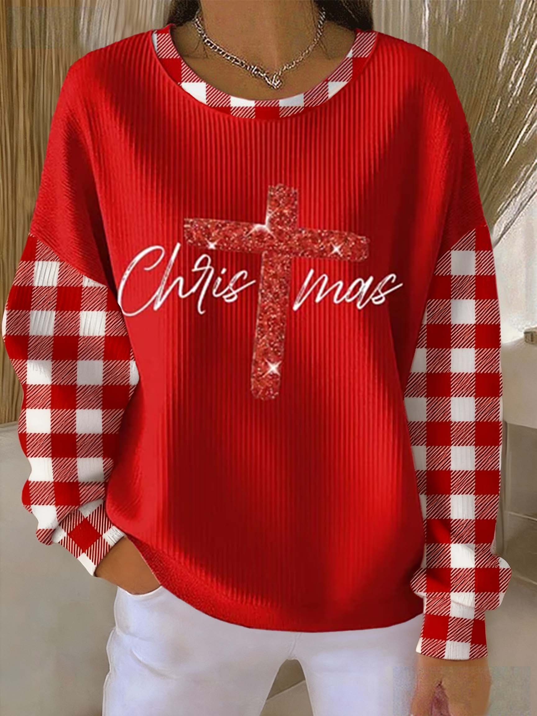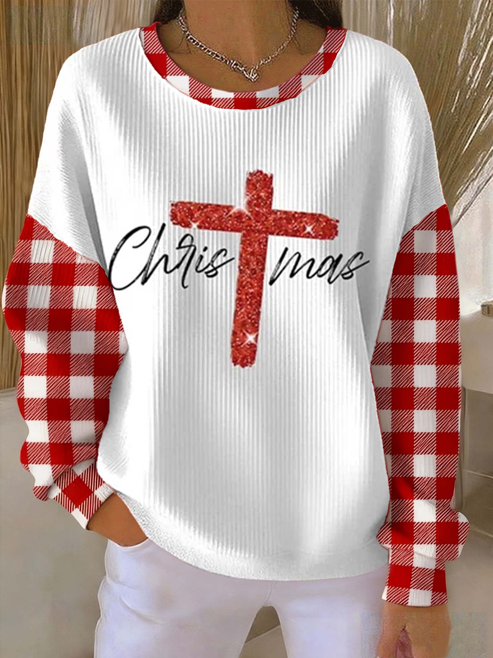 Christmas Shiny Cross Print Casual Sweatshirt