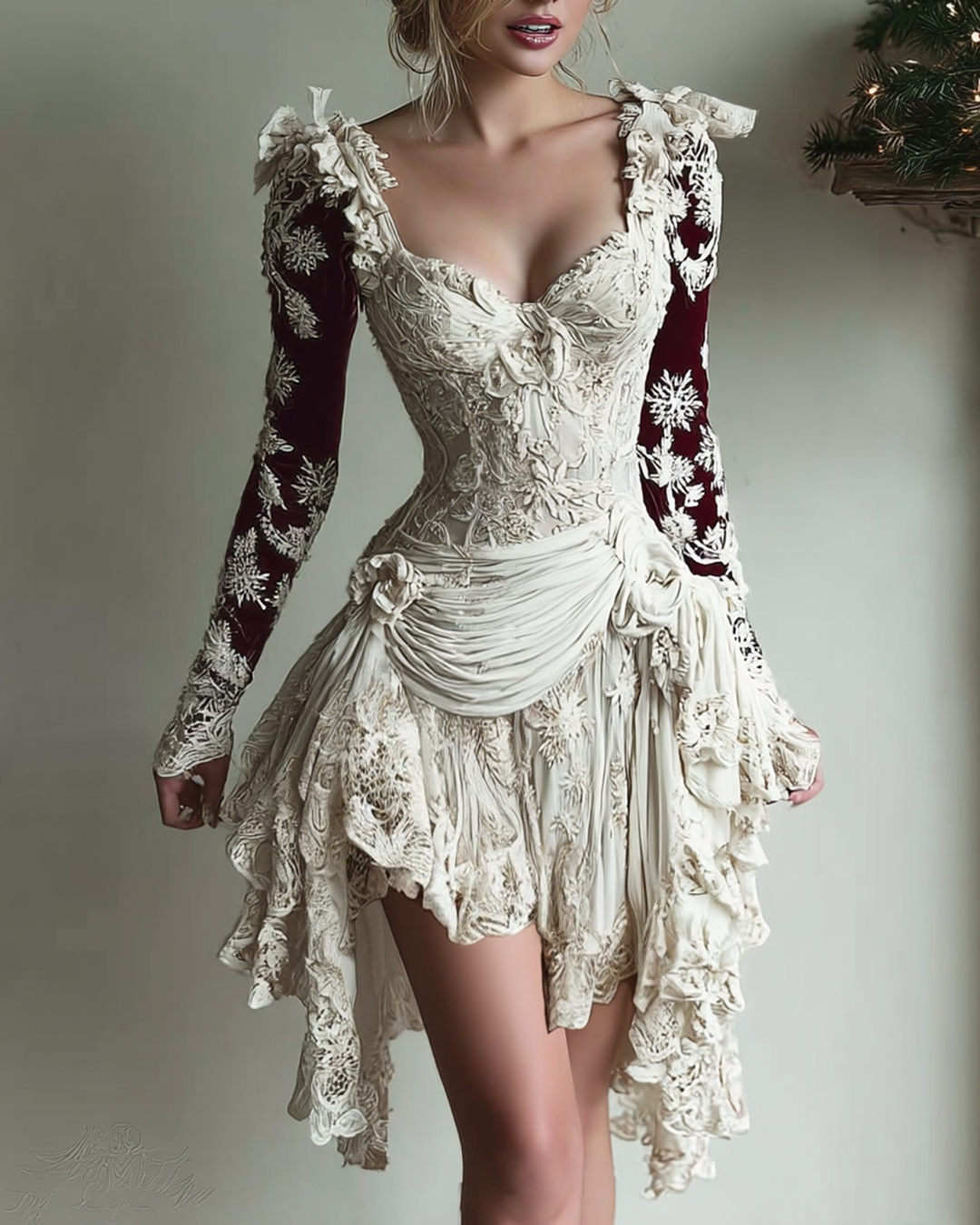 Christmas Themed Contrasting Color Irregular Lace Patchwork Dress 5366