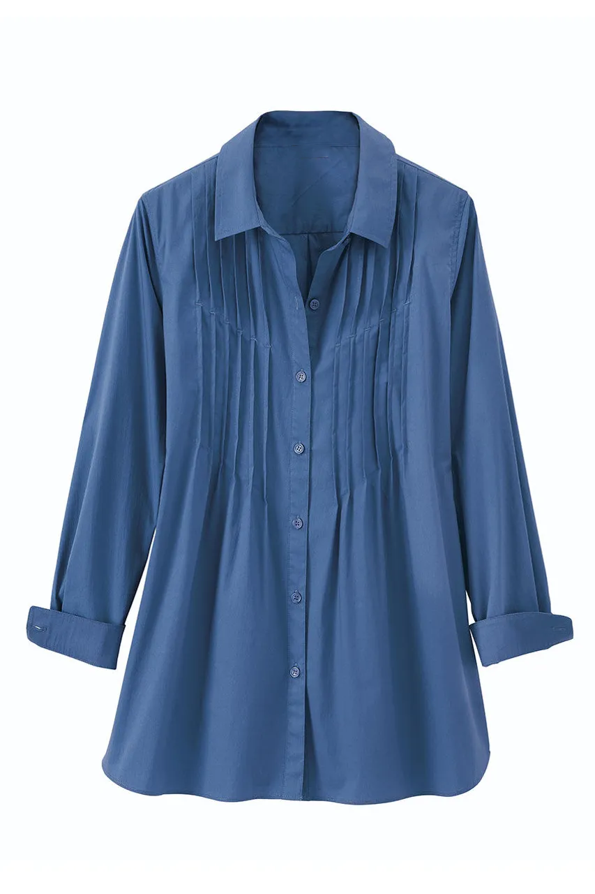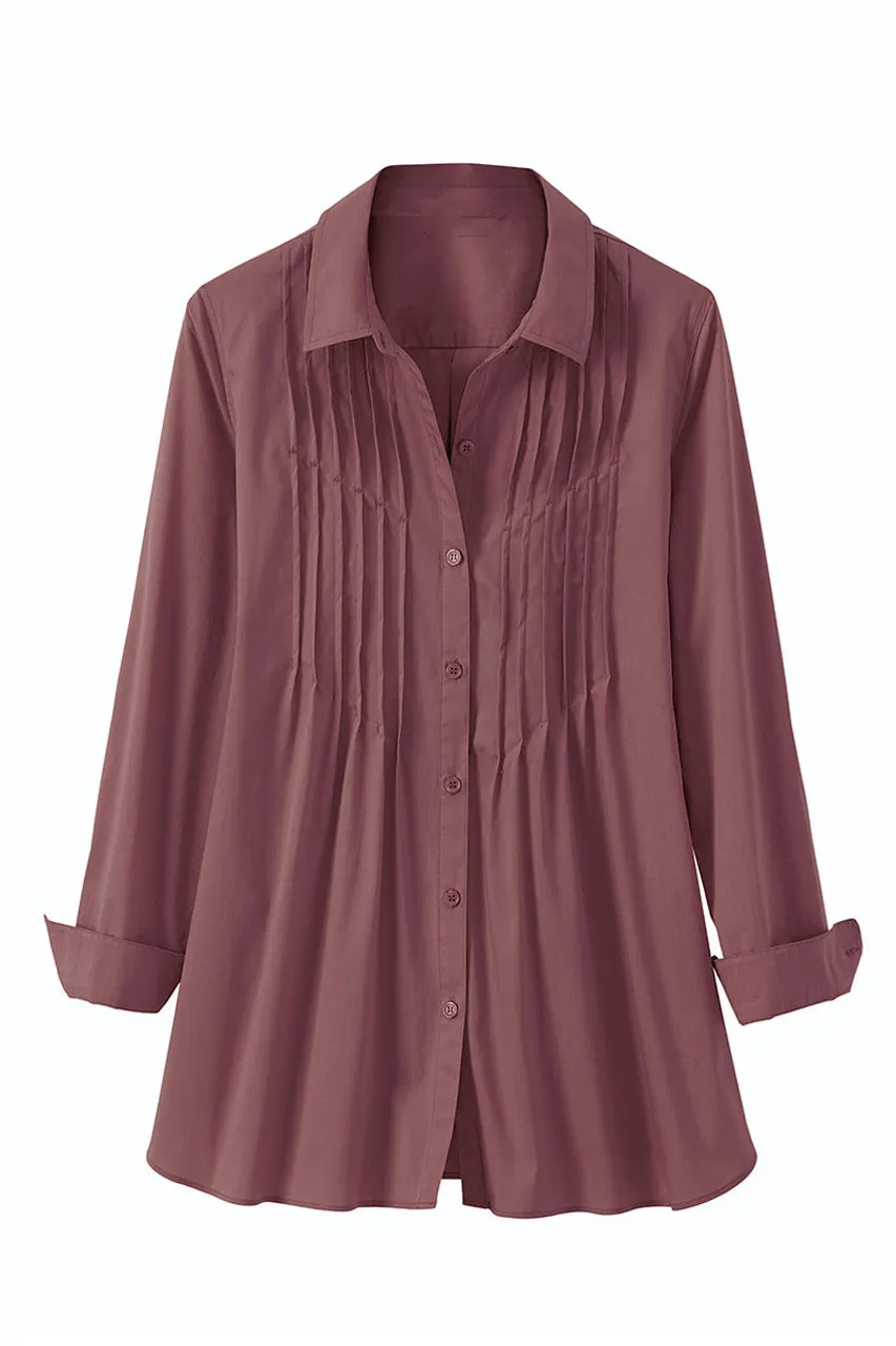 Our Easy Care Pintuck Shirt is everything you love in one versatile top: our wrinkle-resistant fabric, styled in our flattering tuck-and-release silhouette. Full button front with button-cuff sleeves, back box pleat and curved overlapping side slits. Imported.