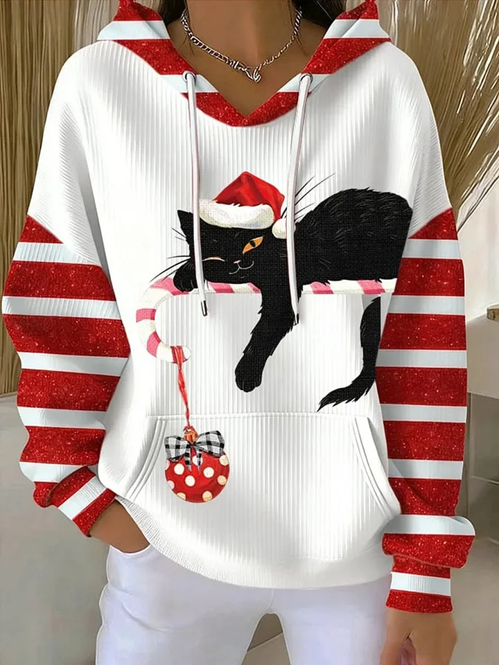 Funny Christmas Cat Casual Hoodie Sweatshirt