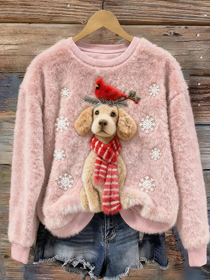 Funny Cute Christmas Dog Art Casual Cotton Plush Sweatshirt