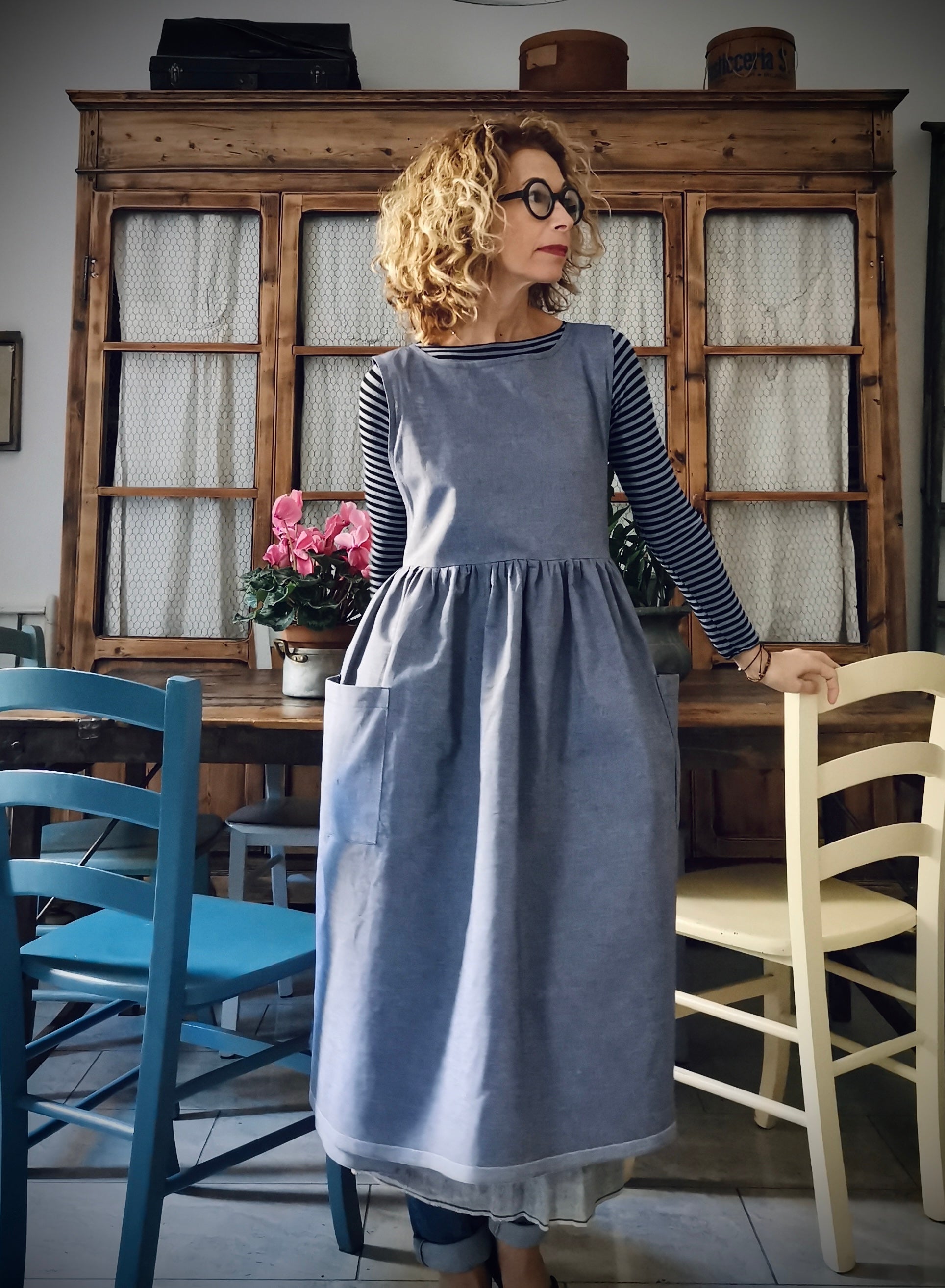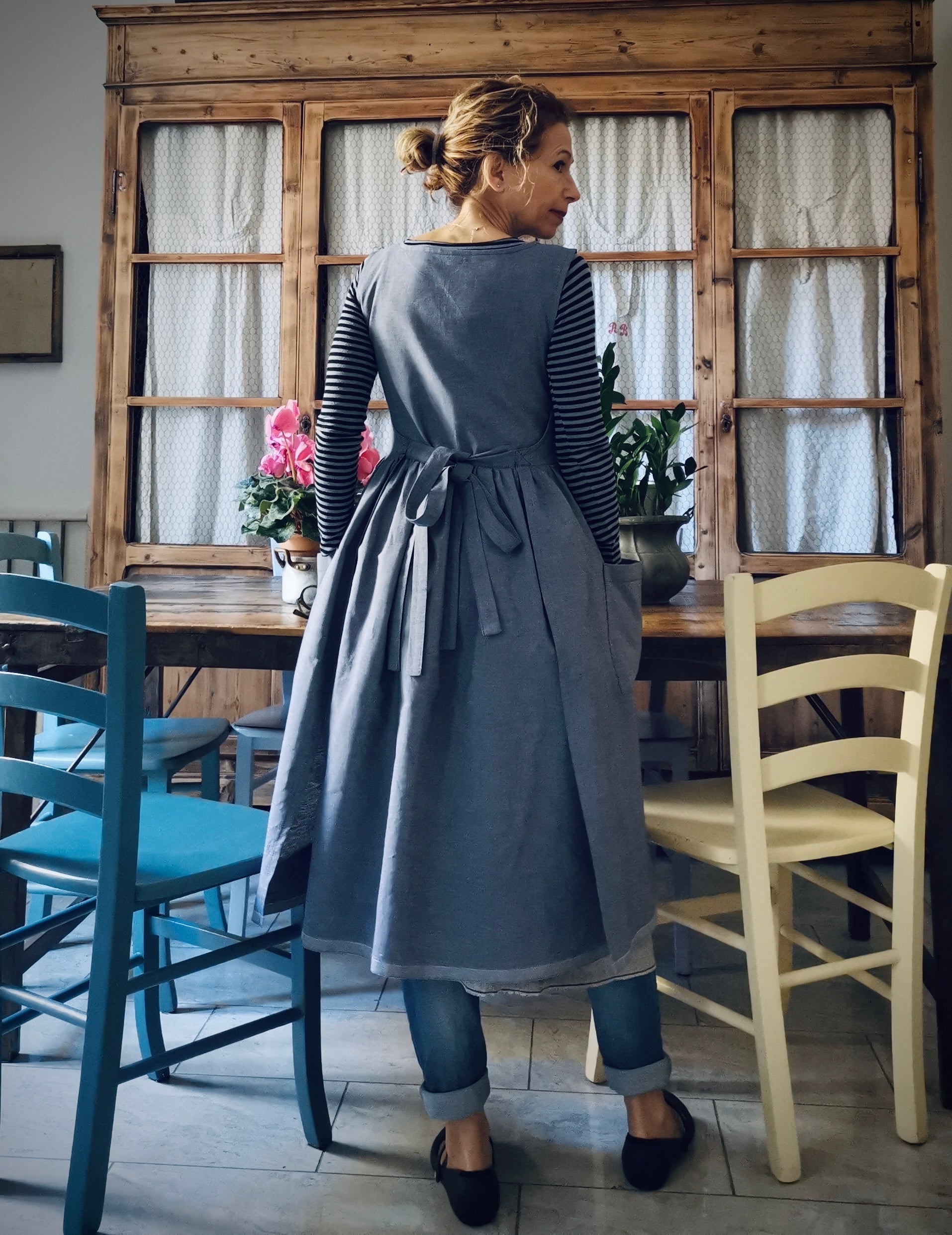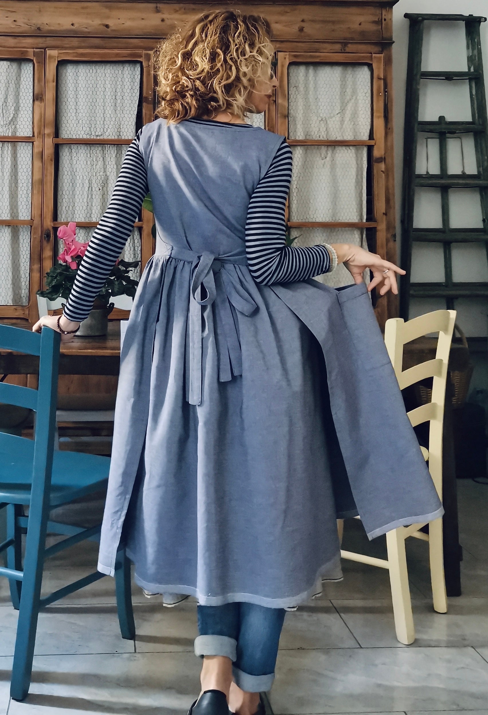 Blue Linen and Cotton Kitchen Apron