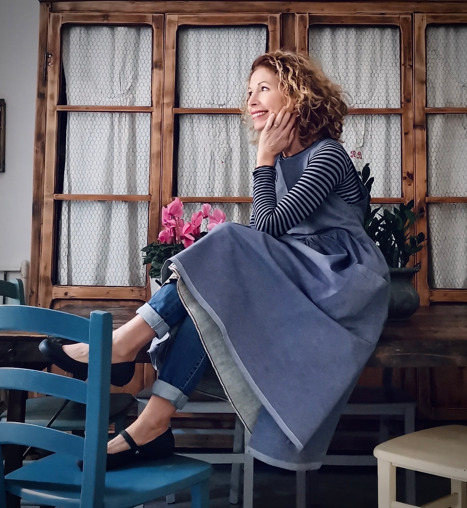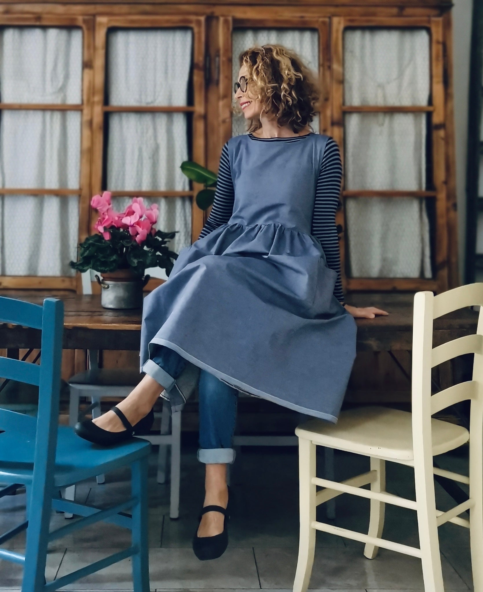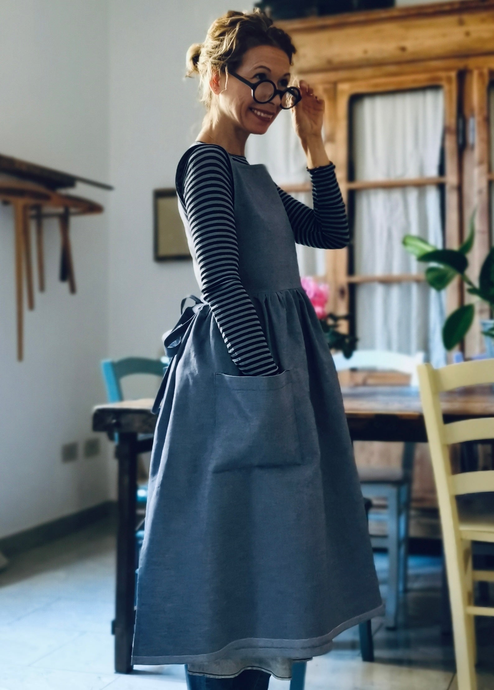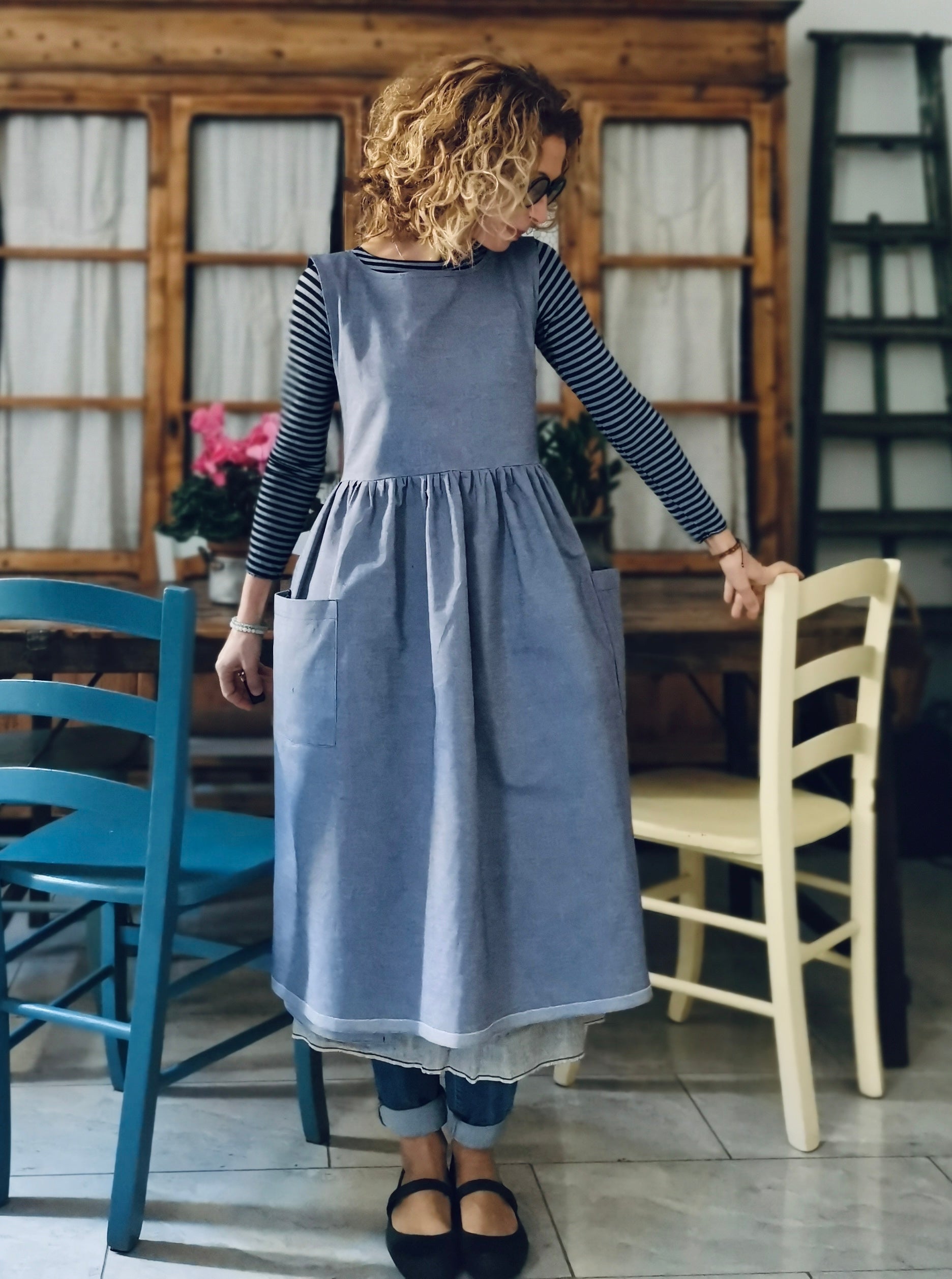 Blue Linen and Cotton Kitchen Apron