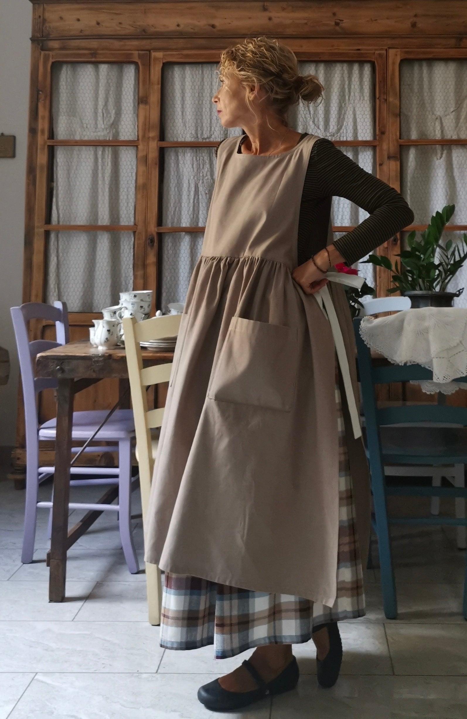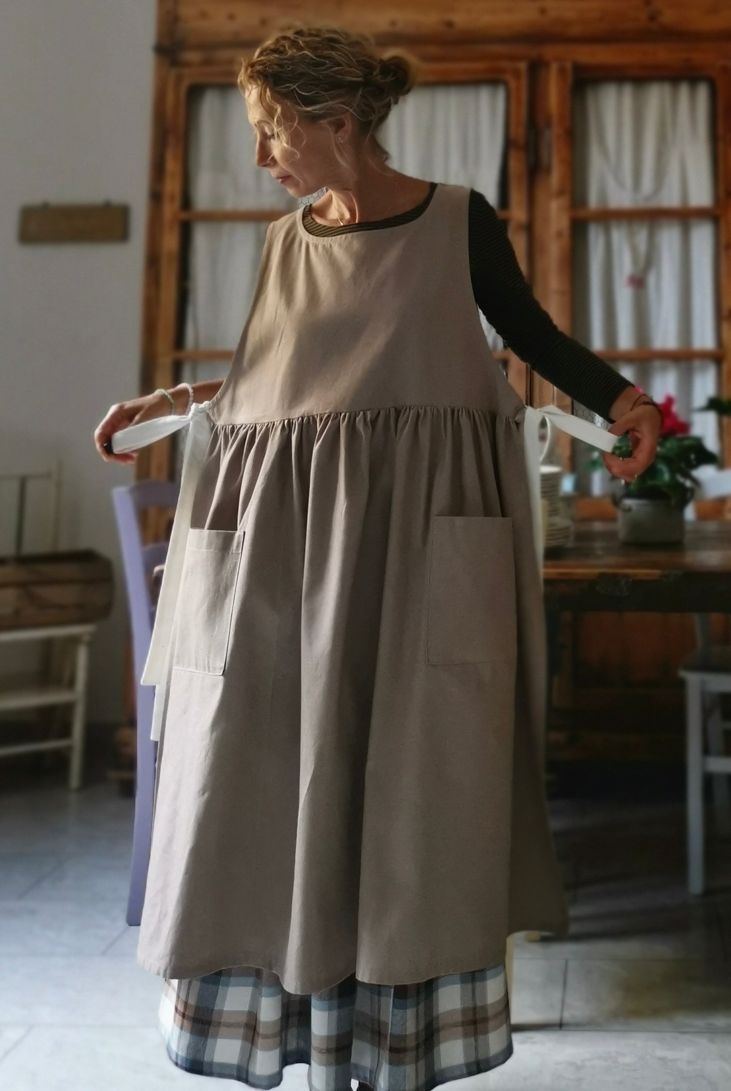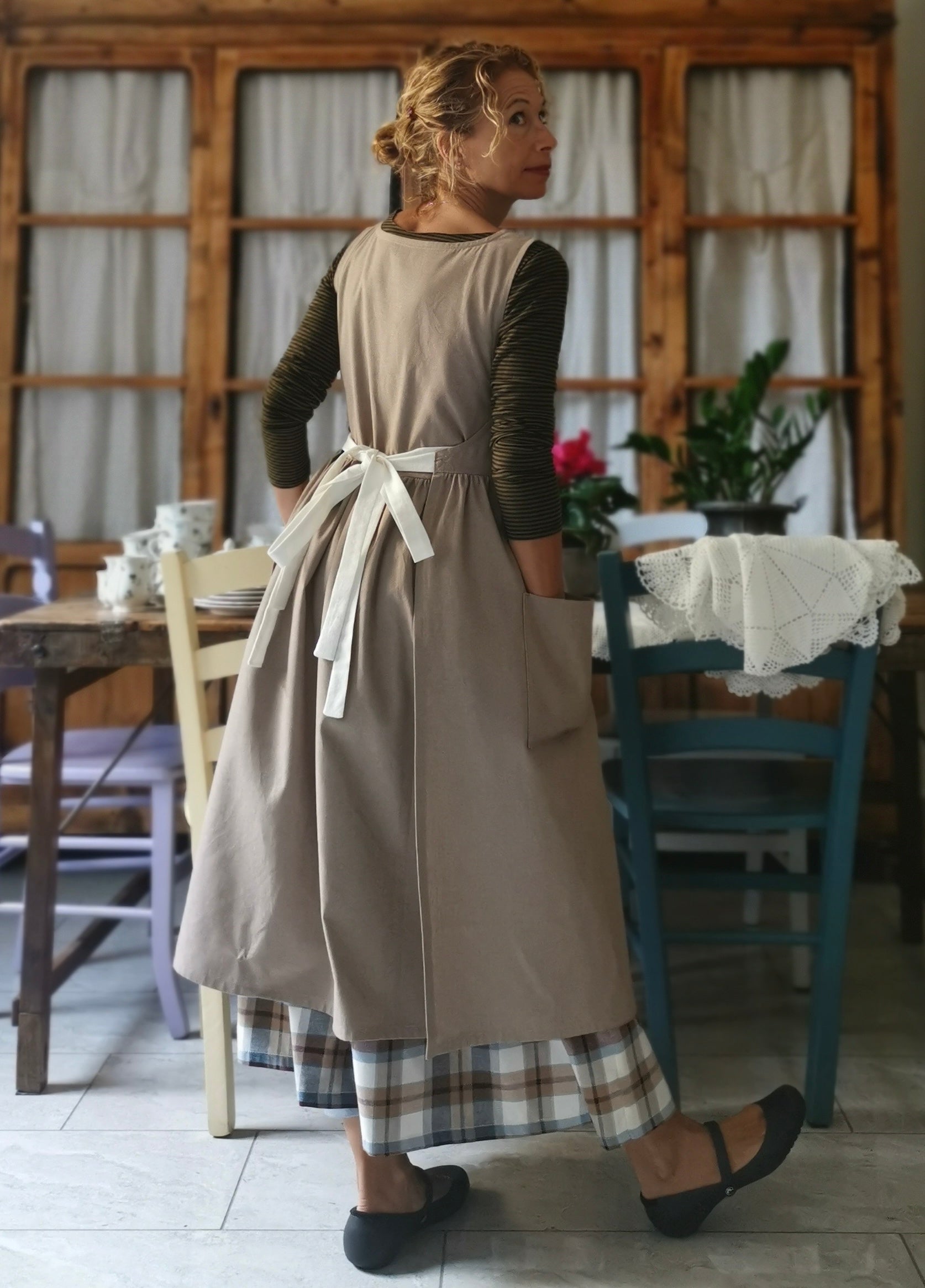 Dove-Grey Women's Apron with Cream Laces