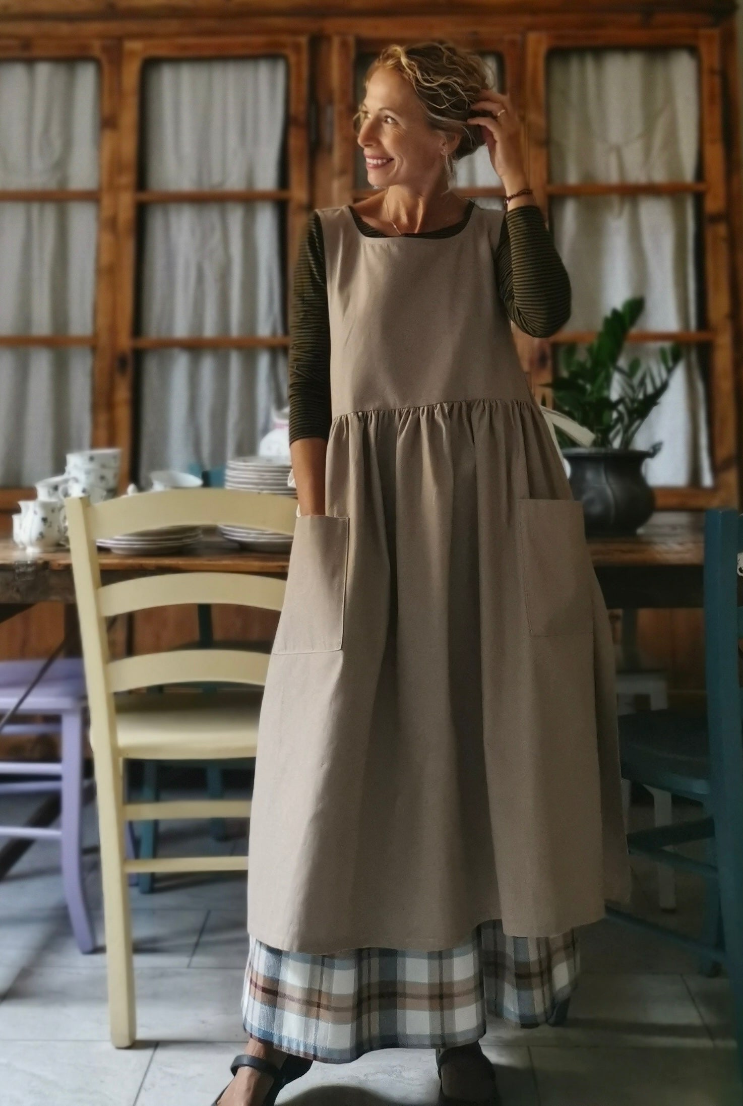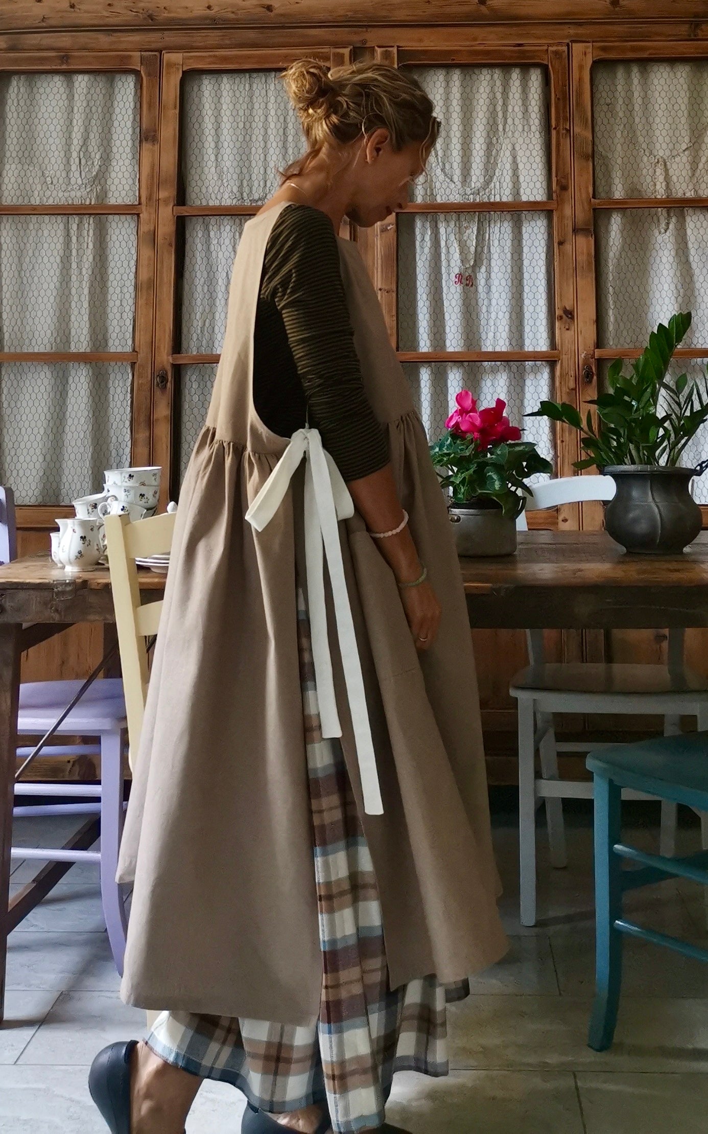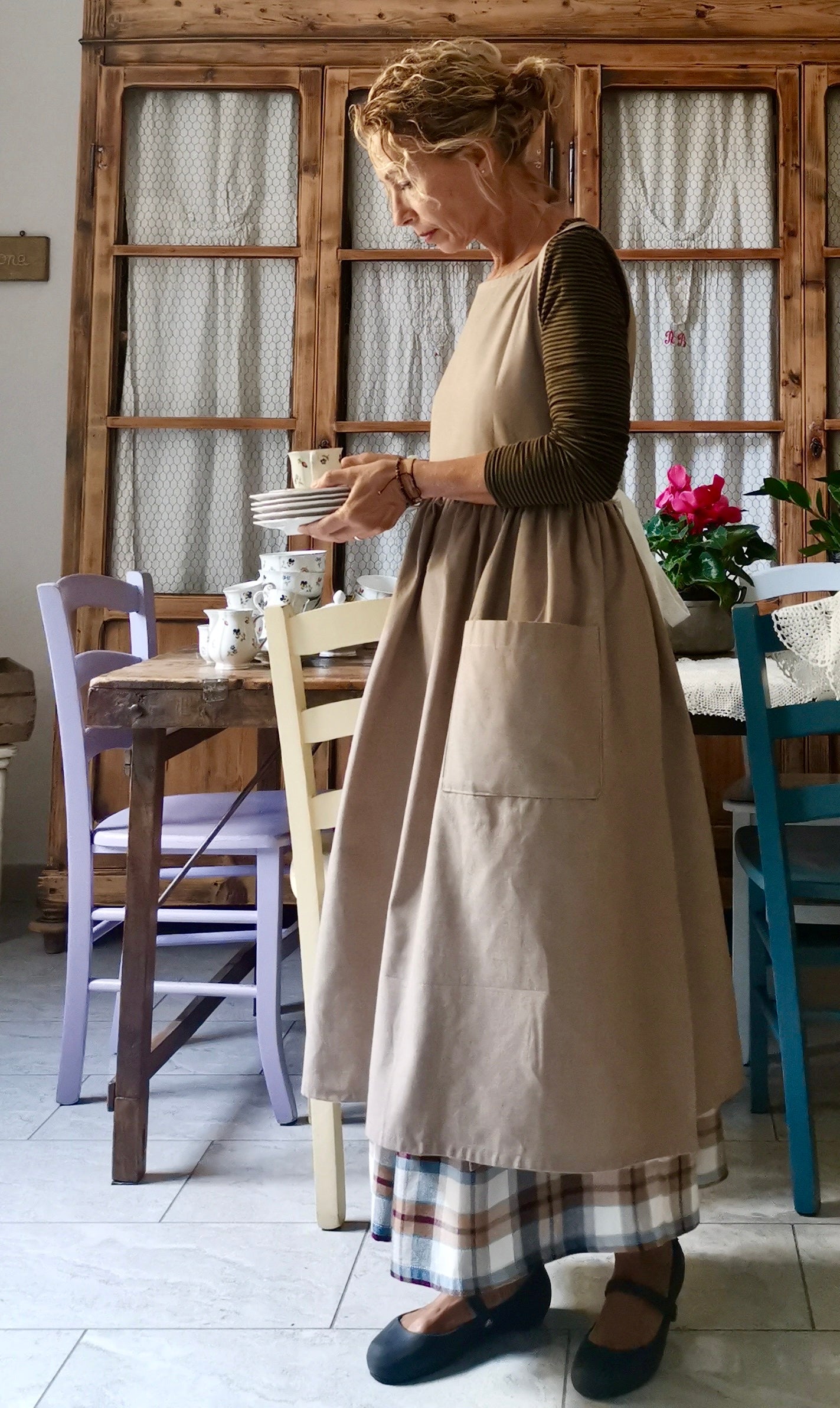 Dove-Grey Women's Apron with Cream Laces