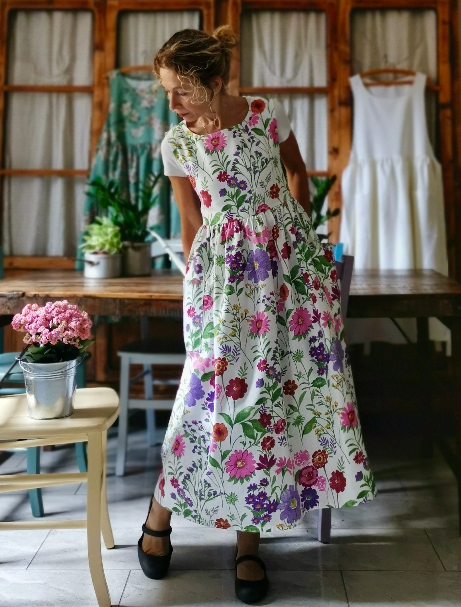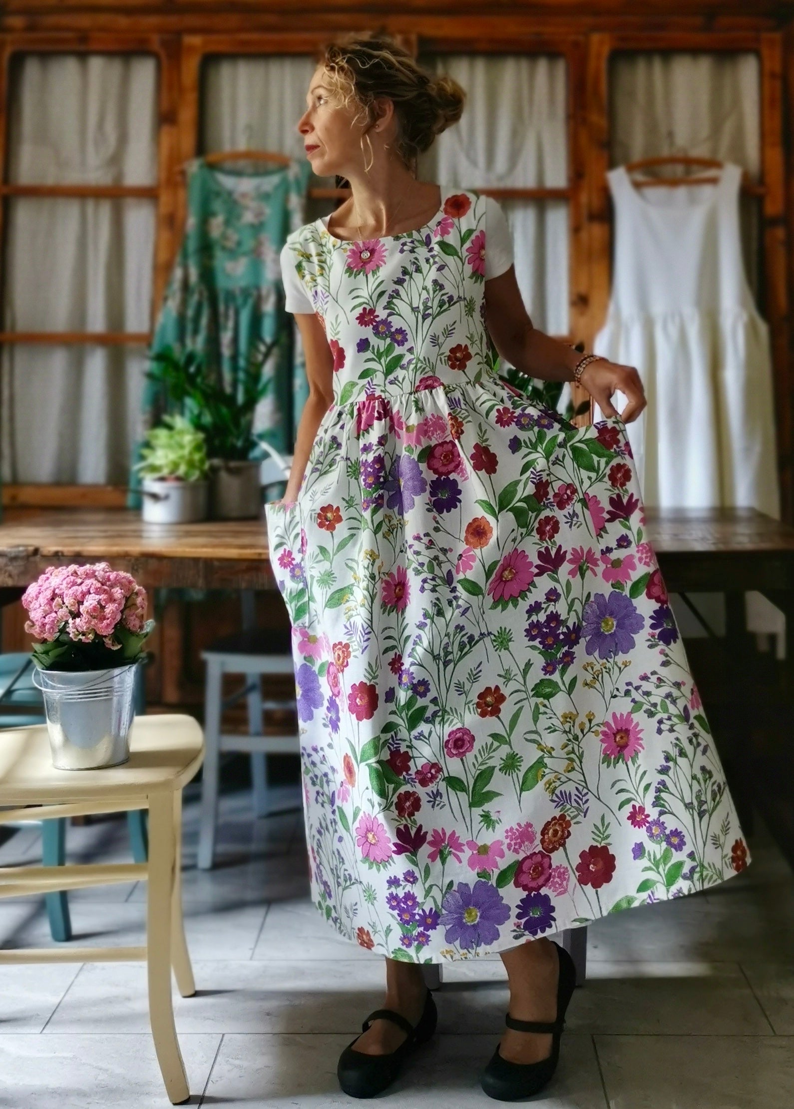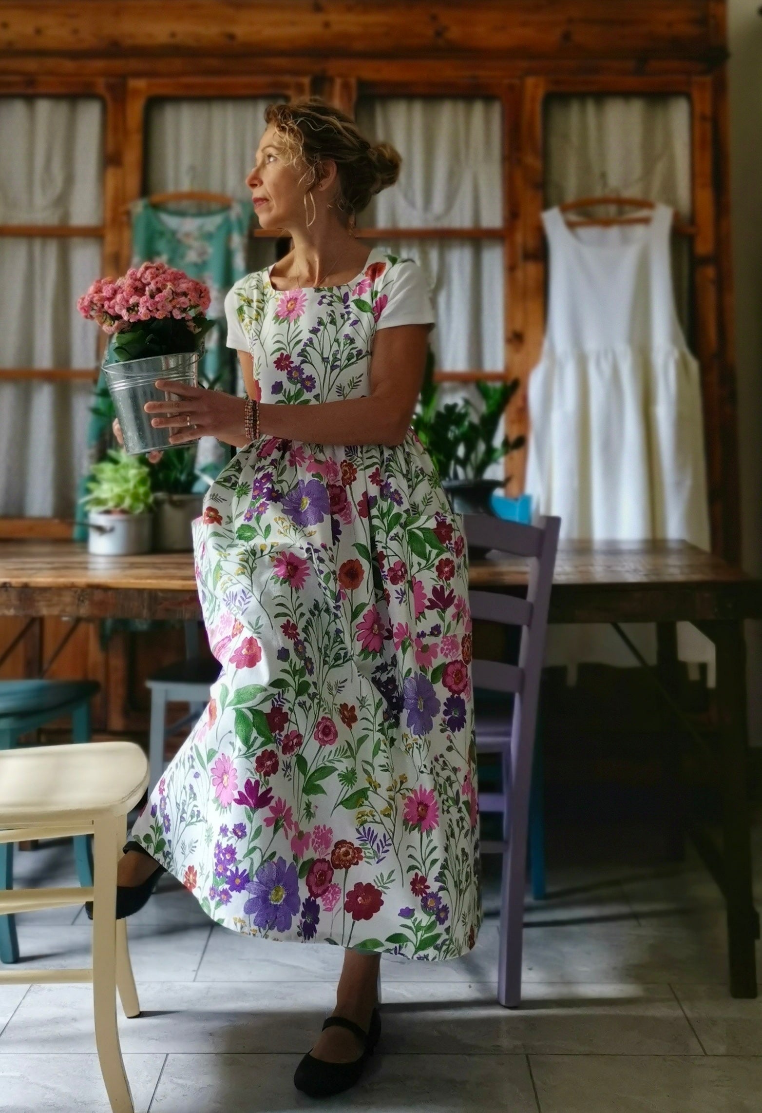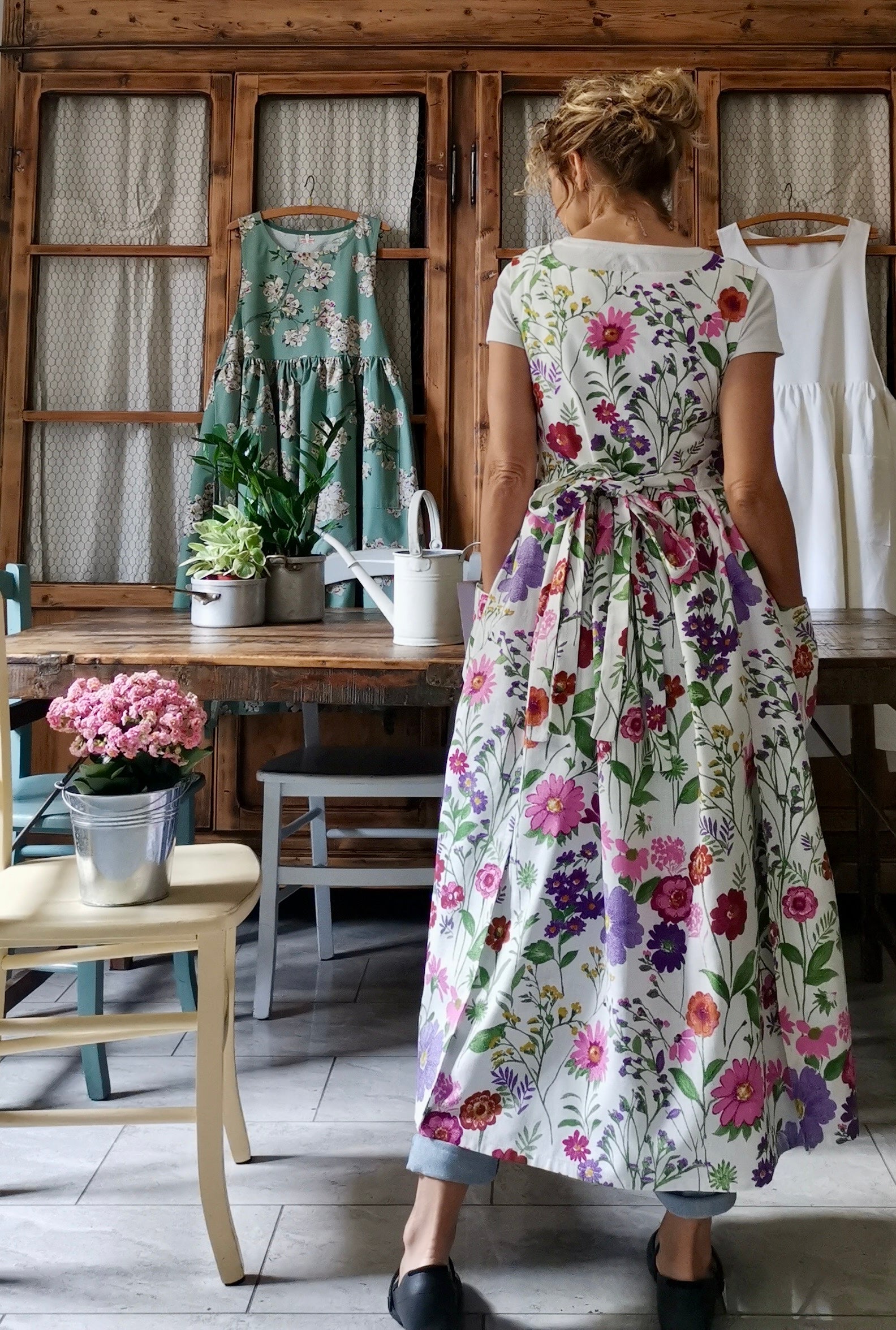 Cotton Apron with Summer Flowers