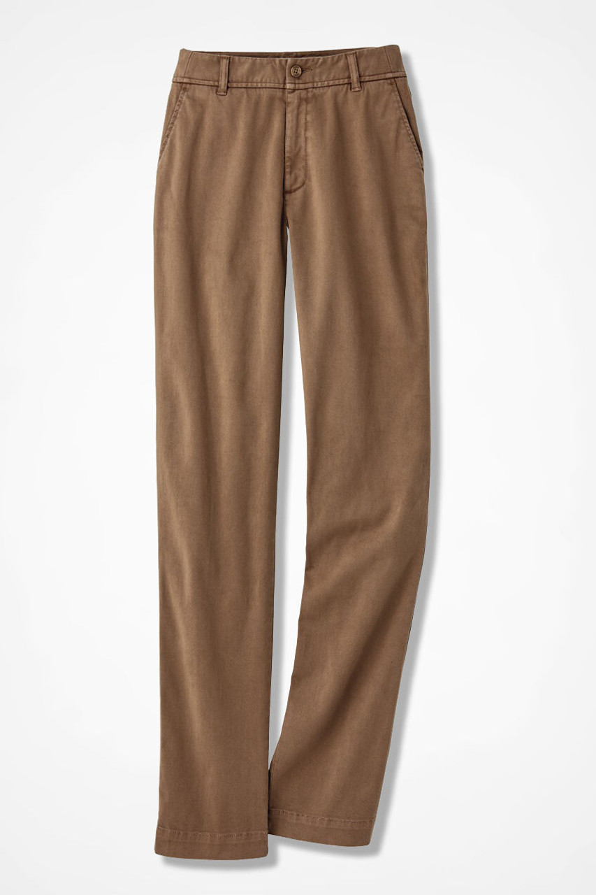 Our everyday chinos, with hidden side elastic bands that expand up to 4" at the waist. Fly front with double-button closure.