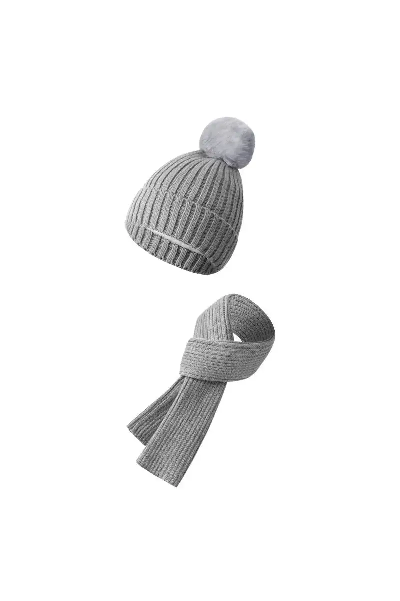 Knitted Hat, Double-layer Fleece Warm Wool Scarf, Gloves, Three-piece Set