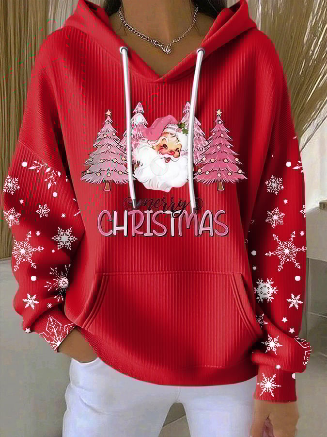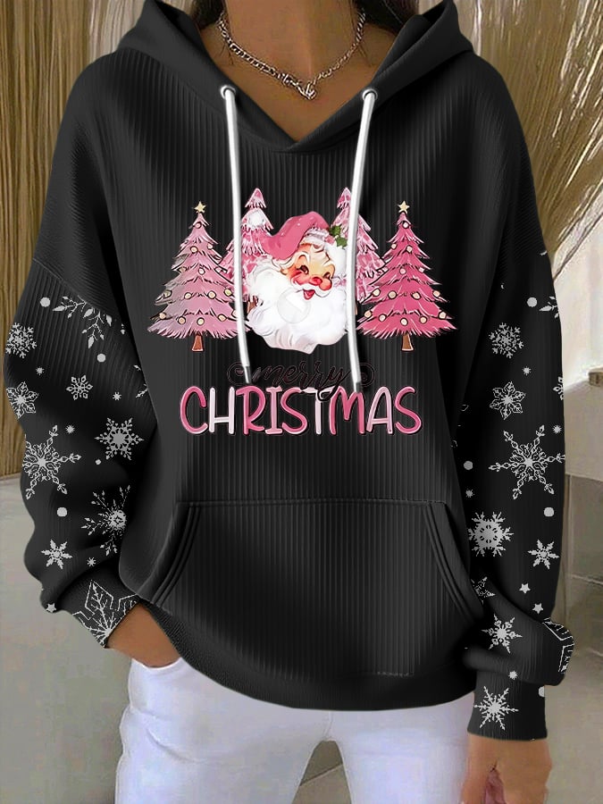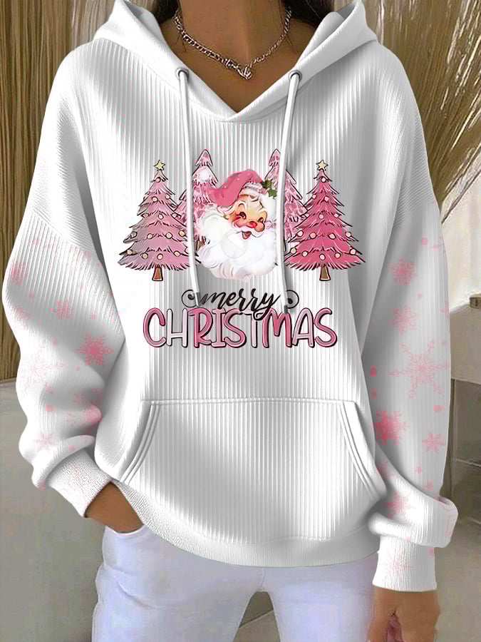 Women's Casual Christmas Pink Santa Claus Hoodie