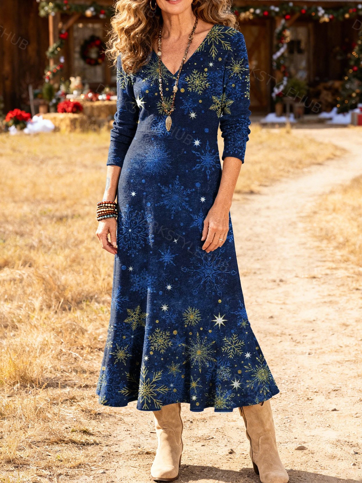 Women's Casual Retro Christmas Snowflake Print Dress
