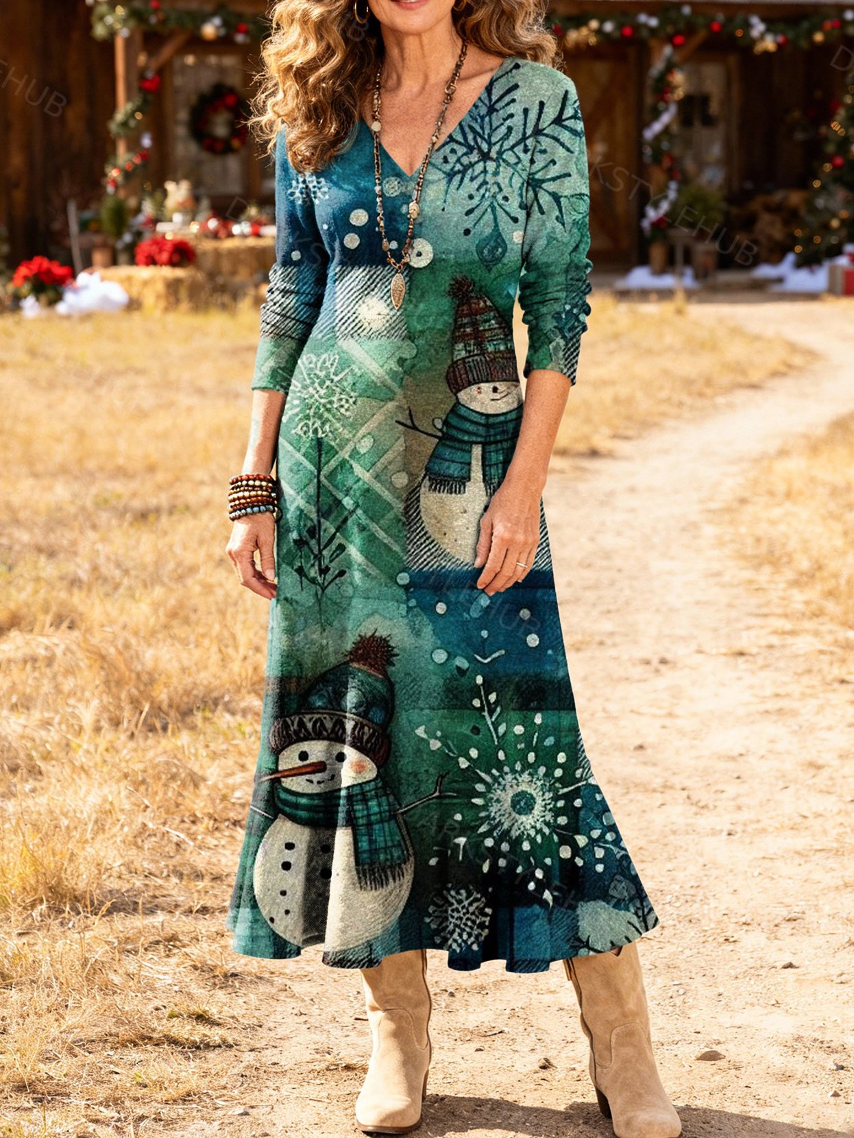 Women's Casual Retro Christmas Snowman Patchwork Print Dress