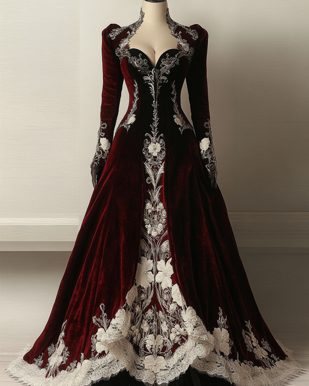 Christmas Themed Floral Lace Patchwork Embroidered Velvet Dress 2192